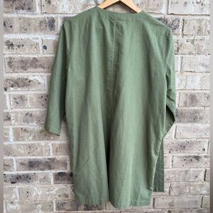 Eileen Fisher Olive Green Organic Cotton Open Front Jacket Size Large Relaxed