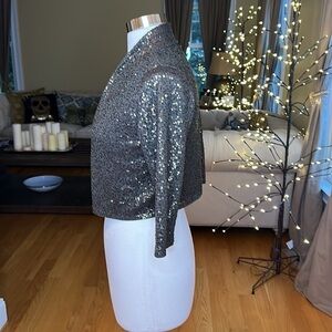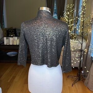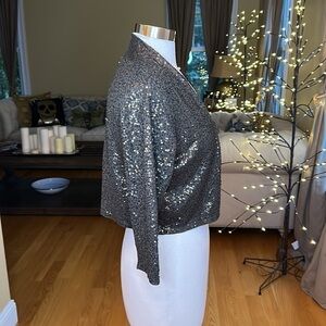Eileen Fisher Olive Green Sequin Cropped Open Front Cardigan