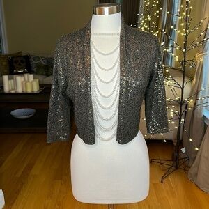Eileen Fisher Olive Green Sequin Cropped Open Front Cardigan Petite Small