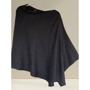 Eileen Fisher One Size Gray Merino Wool Rib Poncho Sweater Drape Asymmetrical