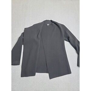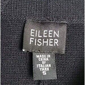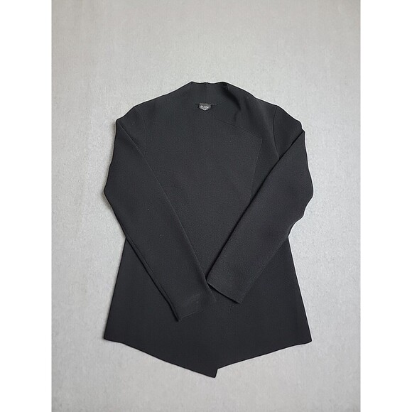 Eileen Fisher Open Cardigan S Black Wool Kniy Lightweight Asymmetrical Preppy