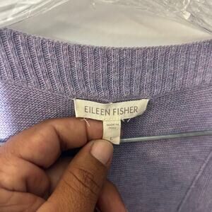 Eileen Fisher Open Front Organic Cotton Lavender Cardigan Sweater Women’s Large