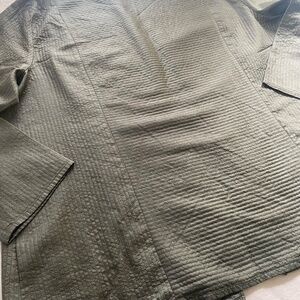 Eileen Fisher Open Front Quilted Silk Tussah Jacket Women's Sz 1X/XL Grey Green