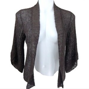 Eileen Fisher Open Knit Brown 3/4 Sleeve Cardigan