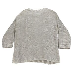 Eileen Fisher Open Knit Sweater Boxy Top Bone Organic Cotton/Linen Small