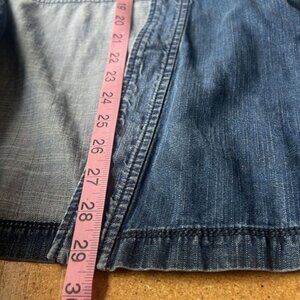 This embroidered denim jacket combines casual style with patriotic artistry. Crafted with an open-front design and two front pockets, it’s versatile and functional. Slight wear on inner tag, no visible flaws on fabric or embroidery.