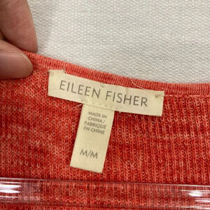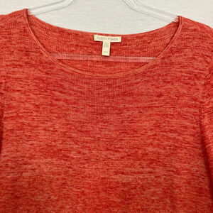 Eileen Fisher Orange Crew Neck Cotton Knit 3/4 Sleeve Pullover Sweater Medium