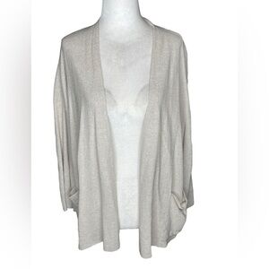 Eileen Fisher Organ Linen & Cotton Blend Front Pockets Open Knit Cardigan Large