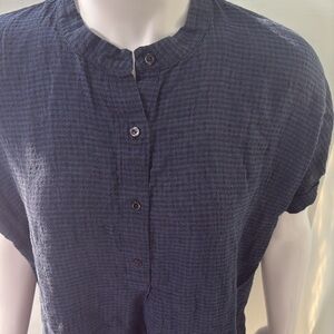 Eileen Fisher Organic Black & Blue Linen Shift Dress SP
