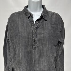Eileen Fisher Organic Chambray Denim 1/4 Button Long Sleeve Top Women's XS