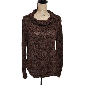 Eileen Fisher Organic Cotton Brown and Black Cowl Neck Sweater Size Medium