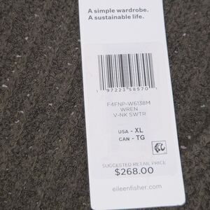 Eileen Fisher V-Neck Organic Cotton & Cashmere Blend Sweater Womens Size XL Chunky Ribbed Textured Knit Fall Winter