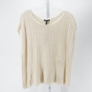 It's all about texture when it comes to this cap-sleeve sweater from Eileen Fisher. This nubby, eyelash-knit piece is cropped at the waist for easy layering. Easy fit; hits at waist Scoop neckline Textured knit Cap sleeves Organic cotton/nylon Machine washable Made in USA *small overstretched/hole on shoulderSize: Womens S Condition: New With Defects