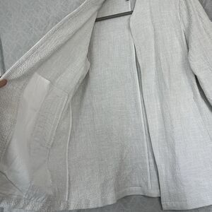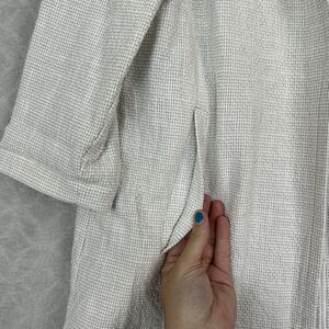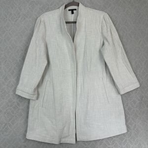 Eileen Fisher Organic Cotton Jacket M White Waffle Knit Open Front Longline Chic