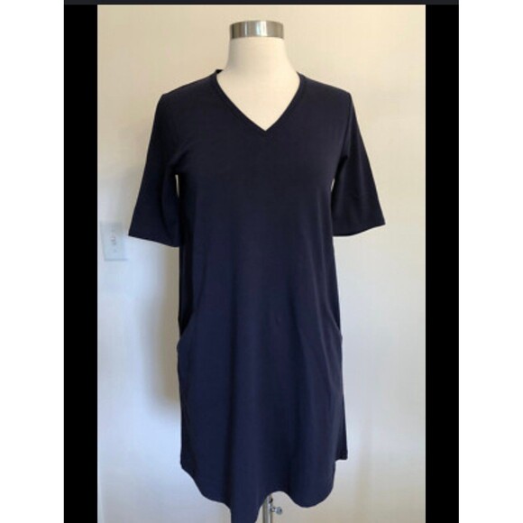 Eileen Fisher Organic Cotton Jersey V-Neck Dress with Pockets Size L