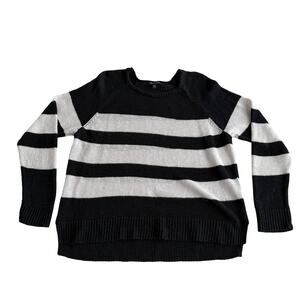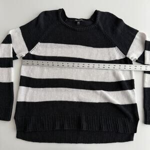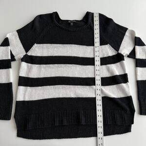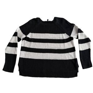 Eileen Fisher Organic Cotton Linen Black White Stripe Crewneck Boxy Sweater XL