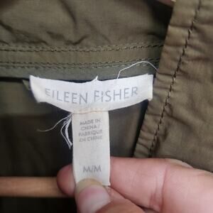 Eileen Fisher Organic Cotton Nylon Tech Jacket Water Resistant Olive Medium