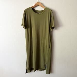 Eileen Fisher Organic Cotton Olive Green Midi T-shirt Dress women's size Medium