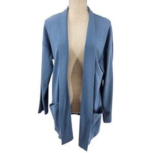 Eileen Fisher Organic Cotton Open Front Cardigan Blue Women's M Knit Minimalist