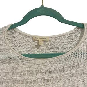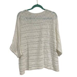 Eileen Fisher Organic Cotton Open Knit Dolman Sleeve White Sweater Size XL