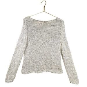 Eileen Fisher Organic Cotton Open Knit Pullover Sweater Top Neutral Boho | M