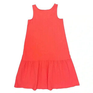 Eileen Fisher Organic Cotton Pucker Tiered Dress Midi Watermelon Sz XS Flowy