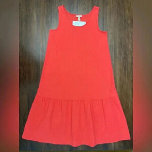 Eileen Fisher Organic Cotton Pucker Tiered Dress Midi Watermelon Sz XS NWT $188