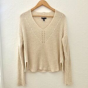 Eileen Fisher Cream crocheted Linen Knit pullover V Neck Sweater