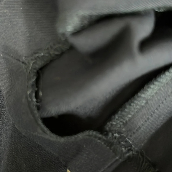 Eileen Fisher Organic Cotton Side Zip Trousers in Navy - Size Medium. Good pre-owned condition. Hem stitching on a small portion of one leg hem has come undone, small white dot on the back of one leg (not sure what it is), all shown in pics. Very little evident wear. Side zip closure with inner button. 2 back welt pockets have not had the stitching released yet. Splits at back leg hems. Organic cotton and spandex blend fabric. Approximate measurements: 17" waist, 9 1/2" rise, 29" inseam.