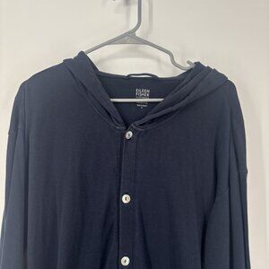 Eileen Fisher Organic Cotton Stitched Trim Robe Navy Blue Womens Size Small