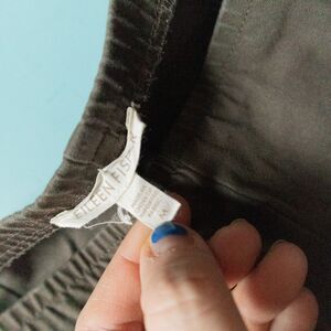 Features: Flat front side zip cropped straight leg organic cotton pants.