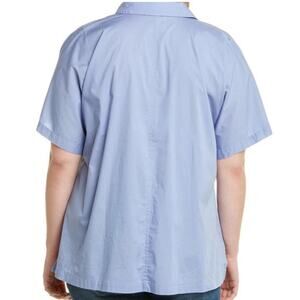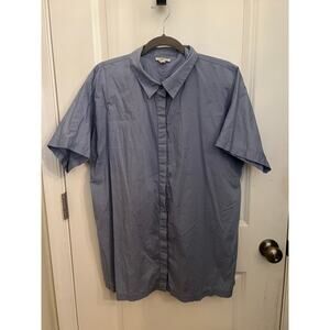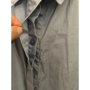 Eileen Fisher Organic Cotton Stretch Collar Button Down Blue L Shirt Career Boxy