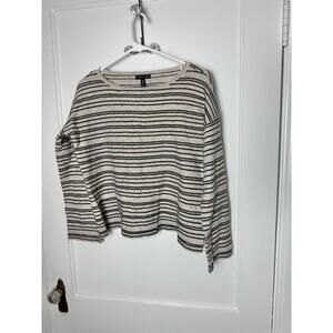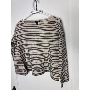 Eileen Fisher Organic Cotton Wool Striped Boat Neck Sweater 90s Women's XS