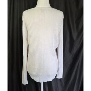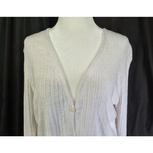 Eileen Fisher Organic Cotton/Linen White Knitted Button-Up Sweater Large