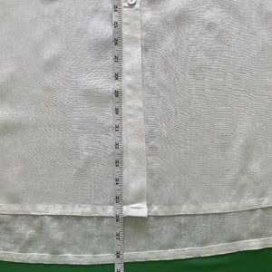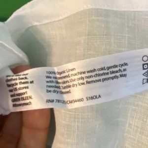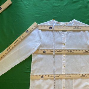 This lovely tunic is currently listed at Neiman Marcus and Dillard's for $228. It is in exceptional condition with absolutely on signs of wear. Features: flax from France in a handkerchief-weight weave fabrication; organic linen; mandarin collar; long sleeves; button front closure; back neckline to hem, approximately 41". See photos for exact measurements.