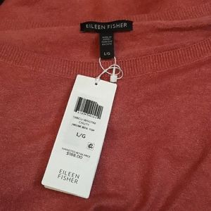 Eileen Fisher Organic LINEN crepe stretch Lightweight Knit Sweater Box Top L NEW