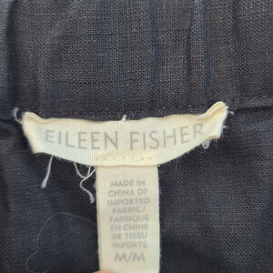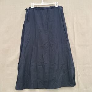 Eileen Fisher Organic Linen Black Midi Faux Wrap Skirt Stretch Waist Tie Size M