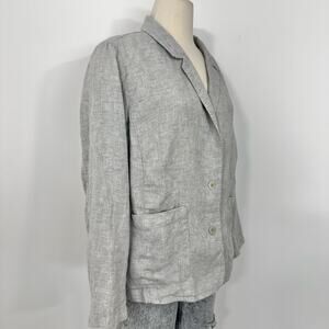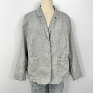 Eileen Fisher Organic Linen Blazer Jacket Blazer Light Gray Metallic | 1X