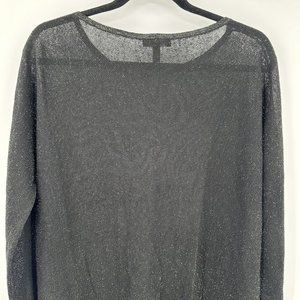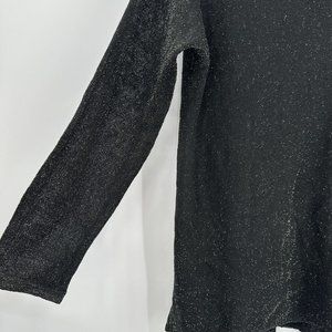 Eileen Fisher Organic Linen Blend Crepe Sparkle Metallic Long Sleeve Blouse Med
