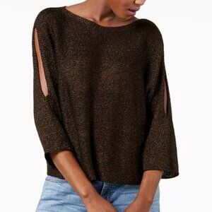 Revealing just a teasing glimpse of skin, slit sleeves add a contemporary touch to a bateau-neck pullover with a warm and rich shine.