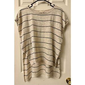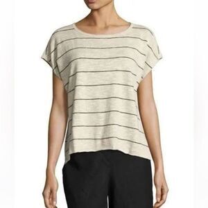 Eileen Fisher Organic Linen Blend Jersey Stripe Hi-Lo Lightweight Top Small