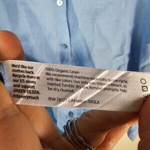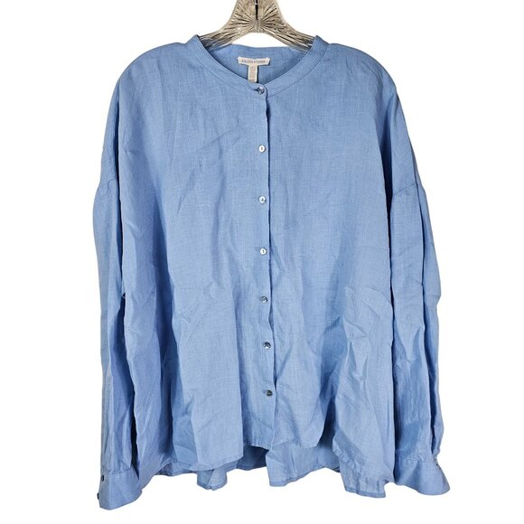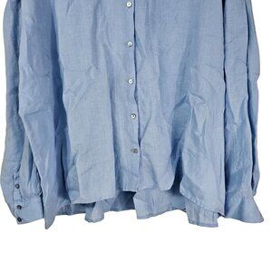 Eileen Fisher Organic Linen Button-Up Shirt L Light Blue Ethical Lagenlook