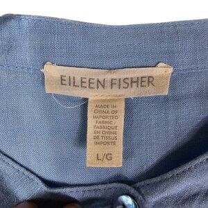 Eileen Fisher, button-up, linen shirt, blue blouse, women's top, casual wear, semi-formal, breathable fabric, organic material, long sleeve, size L, sustainable fashion, eco-friendly, quiet luxury, resort, lagenlook, beachy, travel, relaxed fit, coastal