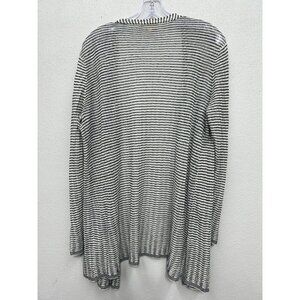 Eileen Fisher Organic Linen Cardigan Medium Graphite Stripe Open Knit Office
