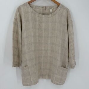 Eileen Fisher Organic Linen Catalan Patch Pocket Oversized Tunic Top Medium