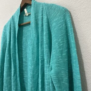 Eileen Fisher Organic Linen Cotton Slub Links High Low Straight Open Cardigan M