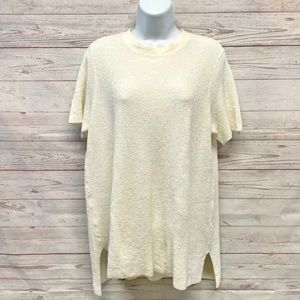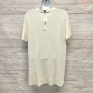 The long lines of our tunic, set apart by a subtle mock neck and stepped hem. In Organic Linen Crepe Stretch, a resilient and textural knit.