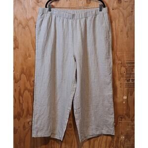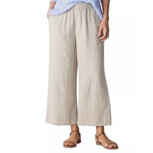 Eileen Fisher Organic Linen Cropped Wide Leg Pant Women XL Beige Minimalist
