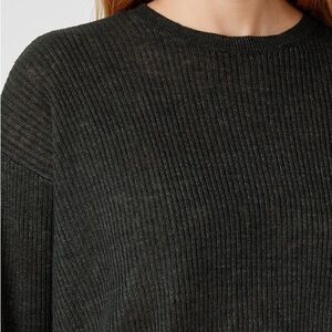 A classic crew neck top with side slits and a longer length. In organic linen that's delave dyed for rich color.