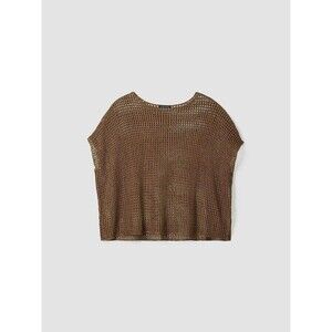 Eileen Fisher Organic Linen Délavé Bateau Neck Top Boxy Fit, Bronze Size M NWOT
